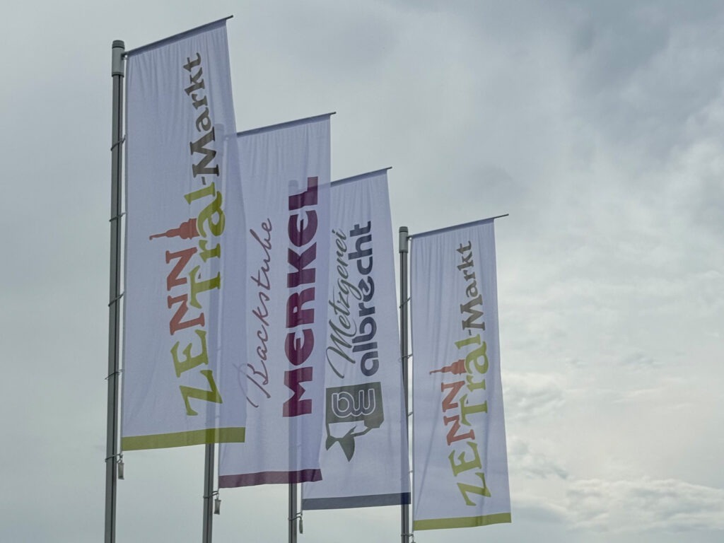 Bei uns erhalten Sie Fahnen in voller Größe mit den dazugehörigen Fahnenmasten. Oder, wenn es etwas kleineres sein soll, Beachflags. Egal ob ein- oder beidseitig bedruckt, ob mit Bodenplatte oder -spieß, wir finden die beste Lösung für Sie.